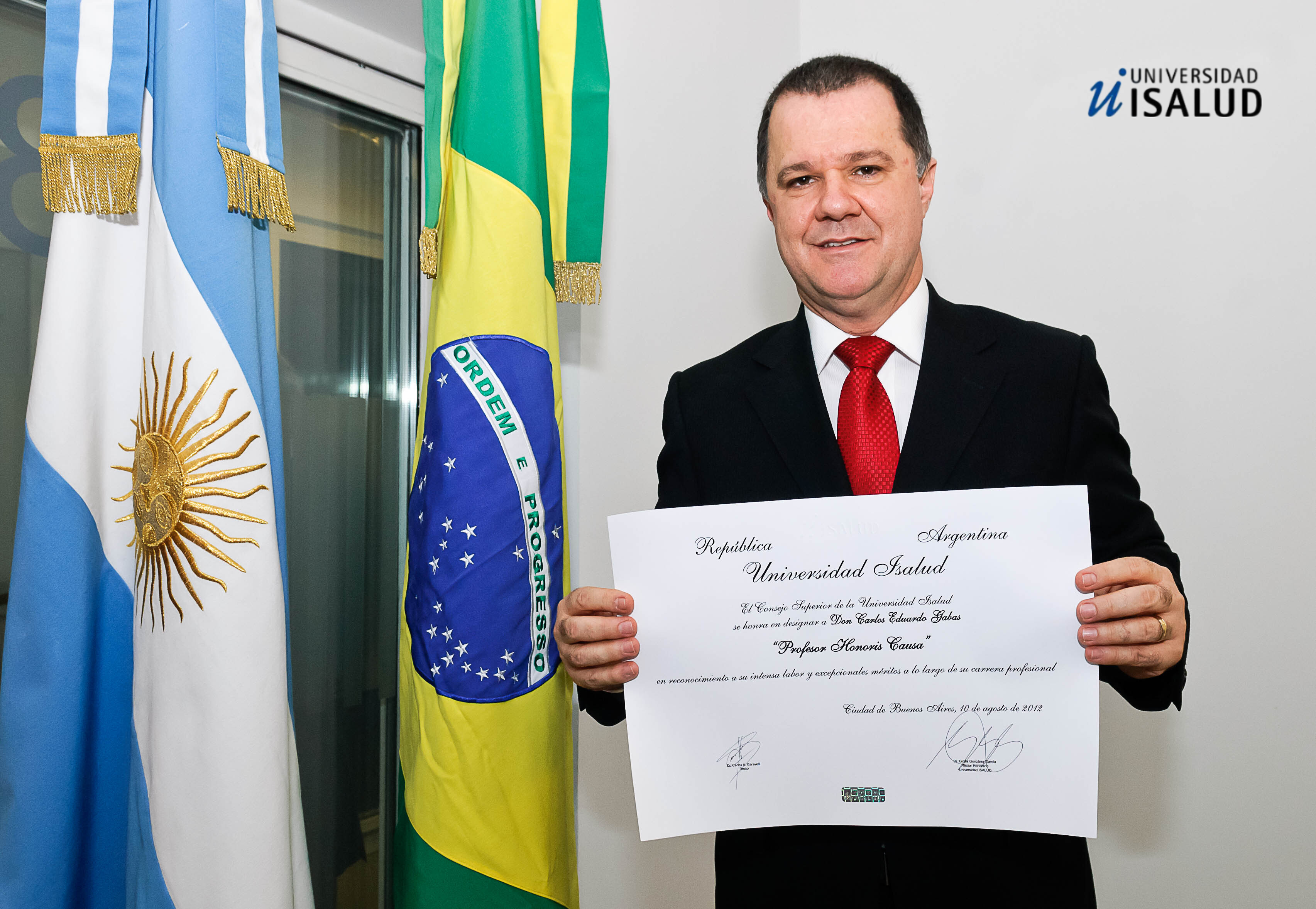 El pasado 10 de agosto la Universidad ISALUD realizó el acto de investidura como Profesor Honoris Causa a Don Carlos Eduardo Gabas, Secretario Ejecutivo del Ministério da Previdência Social de la República Federativa de Brasil. Las ceremonia estuvieron presididas por el Rector Honorario de nuestra Universidad, Dr. Ginés González García.