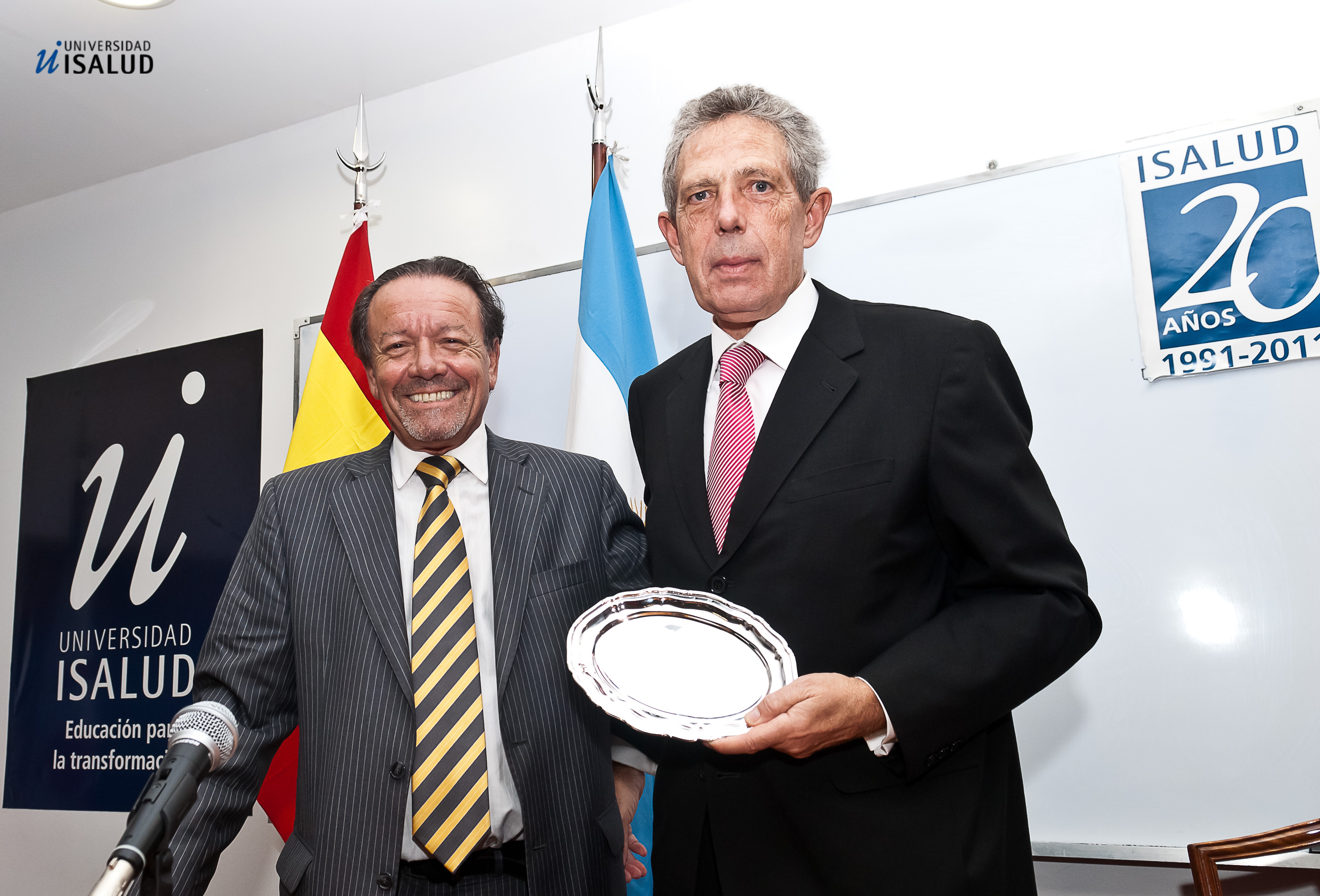 El embajador de España en Argentina, Rafael Estrella, recibió la placa y el diploma de Doctor Honoris Causa de la Universidad de manos del rector honorario y embajador argentino en Chile, Ginés González García; el presidente de la Fundación ISALUD, Mario González Astorquiza; y del vicerrector Eugenio Zanarini.