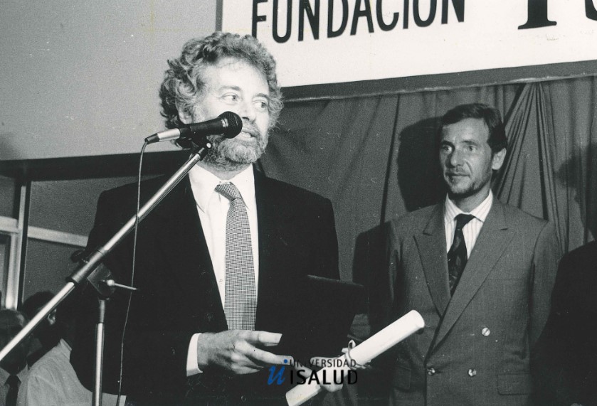 El periodista Daniel Arias recibe el Premio Isalud 1992 en la categoría: Medios de Comunicación (Individual)