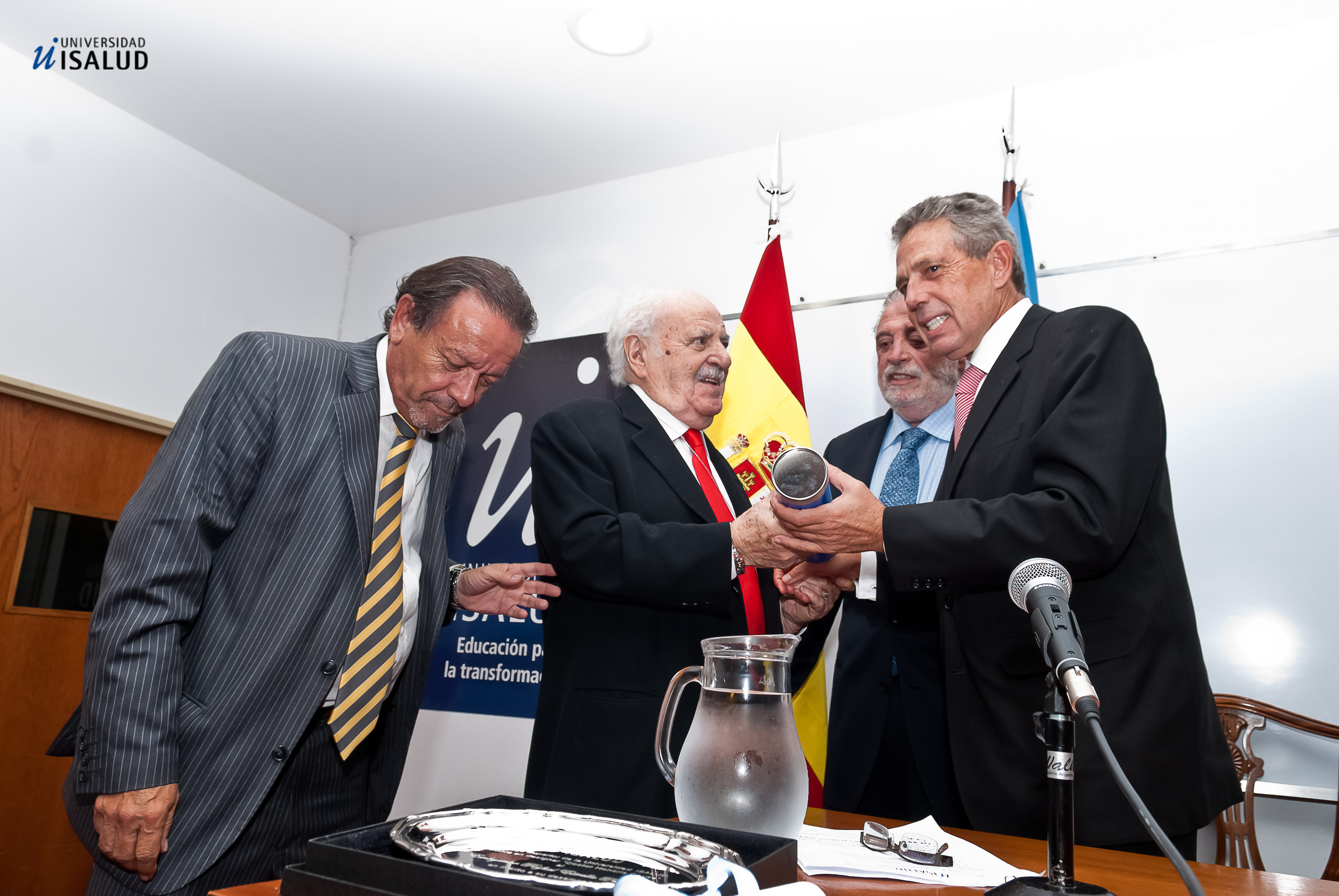 El embajador de España en Argentina, Rafael Estrella, recibió la placa y el diploma de Doctor Honoris Causa de la Universidad de manos del rector honorario y embajador argentino en Chile, Ginés González García; el presidente de la Fundación ISALUD, Mario González Astorquiza; y del vicerrector Eugenio Zanarini.