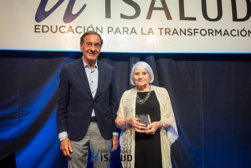 Se entrega el Premio ISALUD a la Farm. EDDA VILLAAMIL LEPORI en la categoría: Ambiente y Salud (Individual). Es Farmacéutica egresada de la Facultad de Química de la Universidad de la República en Uruguay, Doctora en Toxicología de la Universidad de Buenos Aires, Especialista en Toxicología Legal y Forense y Docente Autorizado de la UBA. Co-dirigió y dirigió CENATOXA, un Laboratorio de Asesoramiento Toxicológico Analítico de la Facultad de Farmacia y Bioquímica de la UBA, entre 1995 y 2015. Actualmente es Profesora Titular Consulta, en la Facultad de Farmacia y Bioquímica, UBA. Socia Fundadora y ex-Presidenta de la Asociación Toxicológica Argentina (ATA), Miembro Fundador de la Sociedad Iberoamericana de Salud Ambiental (SIBSA). Actúa en el área de la Toxicología, con énfasis en Evaluaciones de Riesgo para la salud humana, en Toxicología de contaminantes persistentes inorgánicos, orgánicos y emergentes, especialmente los aspectos relacionados con el Ambiente y la Salud Humana. El premio lo ENTREGA Atilio Savino, Vicepresidente de la Fundación ISALUD (izquierda) y lo RECIBE Edda Villaamil Lepori (derecha).