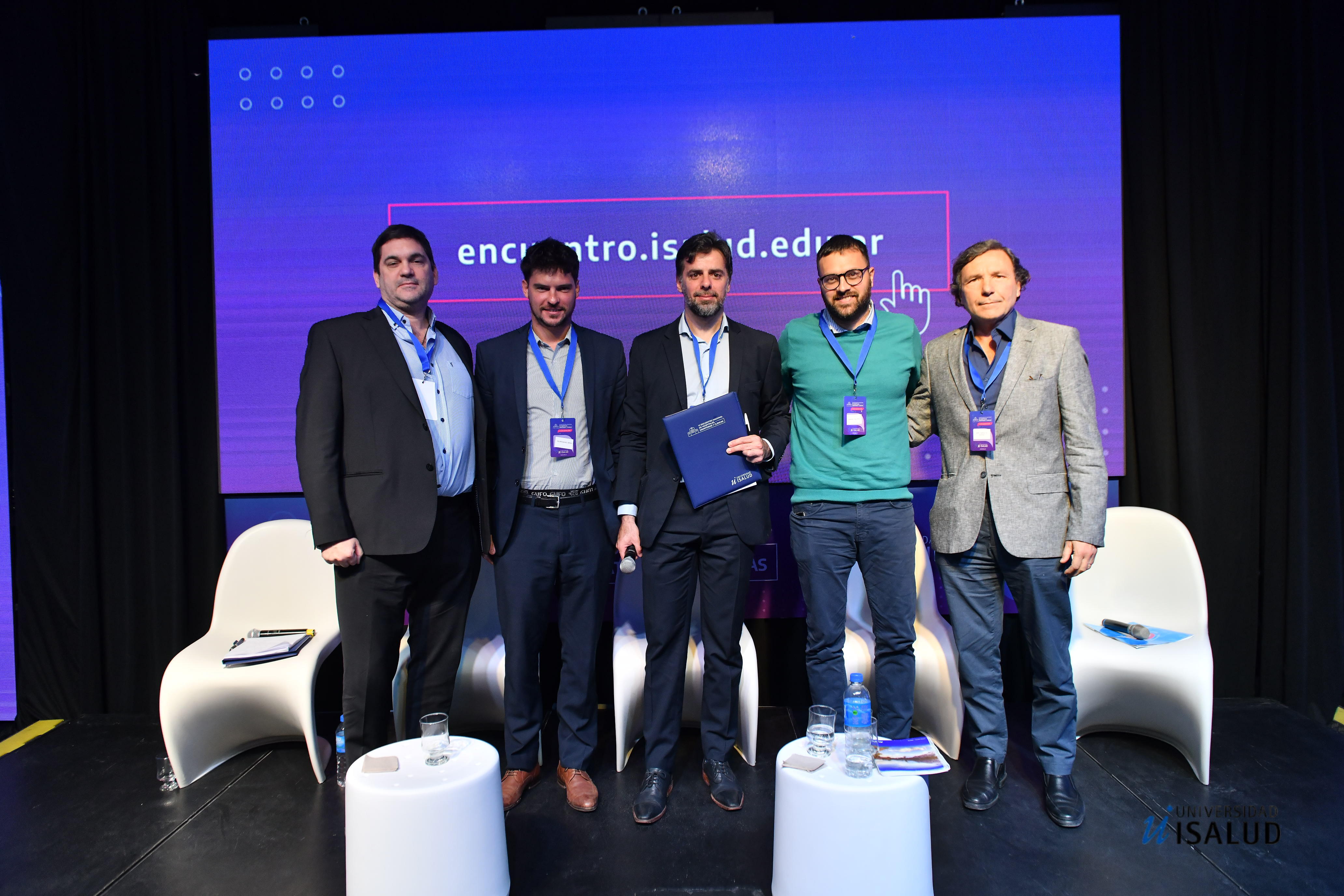 Foto: De izq. a der. Pablo Marchetti (Sanatorio Güemes), Felipe Griva (Hospital Clemente Alvarez de Rosario), Fernando Alí (coordinador), Mariano Salerno (Ministerio de Salud de la Provincia de Buenos Aires) y Ariel Saez Guinoa (Hospital El Cruce).