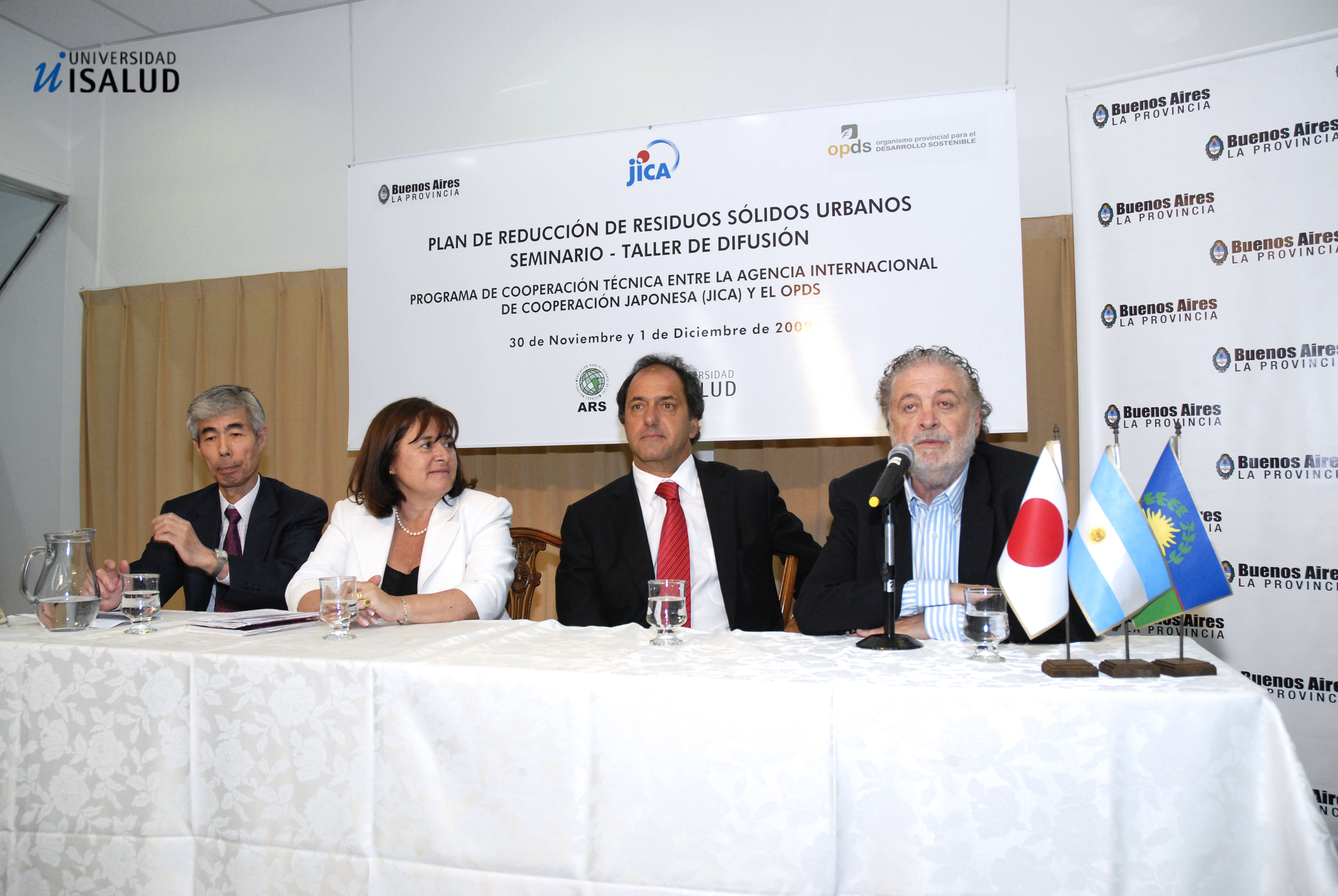 gobernador bonaerense Daniel Scioli; el embajador argentino en Chile, Ginés González García; el embajador de Japón en nuestro país, Hitohiro Ishida; y la entonces directora ejecutiva del OPDS, Ana Corbi. La actividad, a la que asistió personal gerencial o ejecutivo de la administración de residuos sólidos y de medio ambiente de los 134 municipios de la provincia de Buenos Aires, se desarrolló el 30 de noviembre y el 1° de diciembre pasados. El taller se planteó como objetivos entender la necesidad de desarrollar un plan de minimización de residuos sólidos urbanos y establecer redes de trabajo entre las municipalidades.