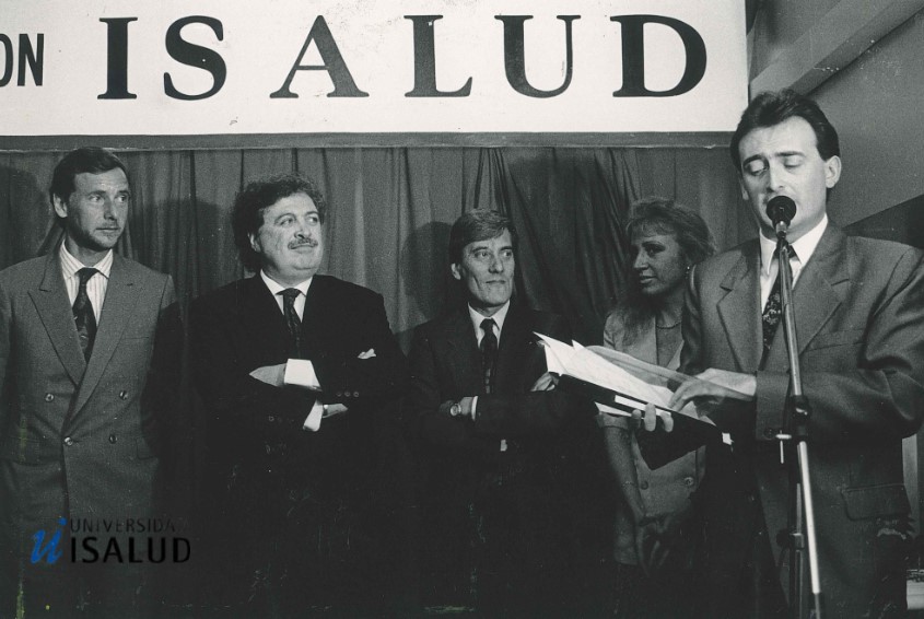 Universidad ISALUD. (1992). El locutor Carlos Laciar inicia el acto de entrega de los Premios Isalud 1992. [Fotografía]. ISALUD. http://rid.isalud.edu.ar/handle/1/557