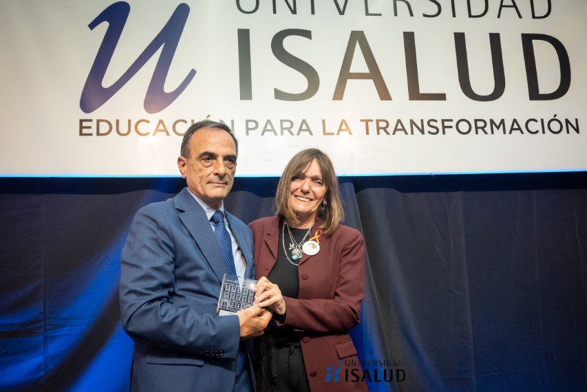 Se entrega el Premio ISALUD a GABRIELA COVELLI en la categoría: Sociedad y Salud (Individual). Madre de Nicolás y de Agustín Deanna, siendo este el título que más la enorgullece y representa. Agustín tiene hoy 28 años y Nicolás falleció a causa de un evento adverso a sus 24 años un 2 de Noviembre de 2017. Como Abogada; ejerció como titular de su estudio en temáticas relacionadas a violencia de género, abuso sexual infantil y defensa de los derechos humanos. Ocupó el cargo de Coordinadora de Niñez y adolescencia en la ciudad de Villa Gesell. La injusta partida de Nicolás la derrumbó no pudiendo comprender el ¿porque?; y desde aquel momento y casi sin quererlo, escribió en la foto de su hijo la frase "Si tu vida derramó tanto amor que tu partida sirva para salvar a otros". Conformó la Asociación Civil "Por la vida y la Salud, por vos, por mí y por todos", que nuclea familiares de todo el país, que han vivido situaciones similares. Escribió el primer bosquejo de lo que hoy se conoce como "Ley Nicolás, Ley de Seguridad Sanitaria" y dedica su vida a ayudar a construir un sistema de salud que evite daños y muertes evitables. Su asociación, logró la adhesión al Día Mundial de la Seguridad del Paciente, 17 de Septiembre de cada año, tal como lo establece la OMS. Jamás encontrará un porque, pero desde esta lucha encontró un nuevo sentido a su vida. El premio lo ENTREGA Claudio Ortiz, Secretario de Ciencia y Tecnología (izquierda) y lo RECIBE Gabriela Covelli (derecha).