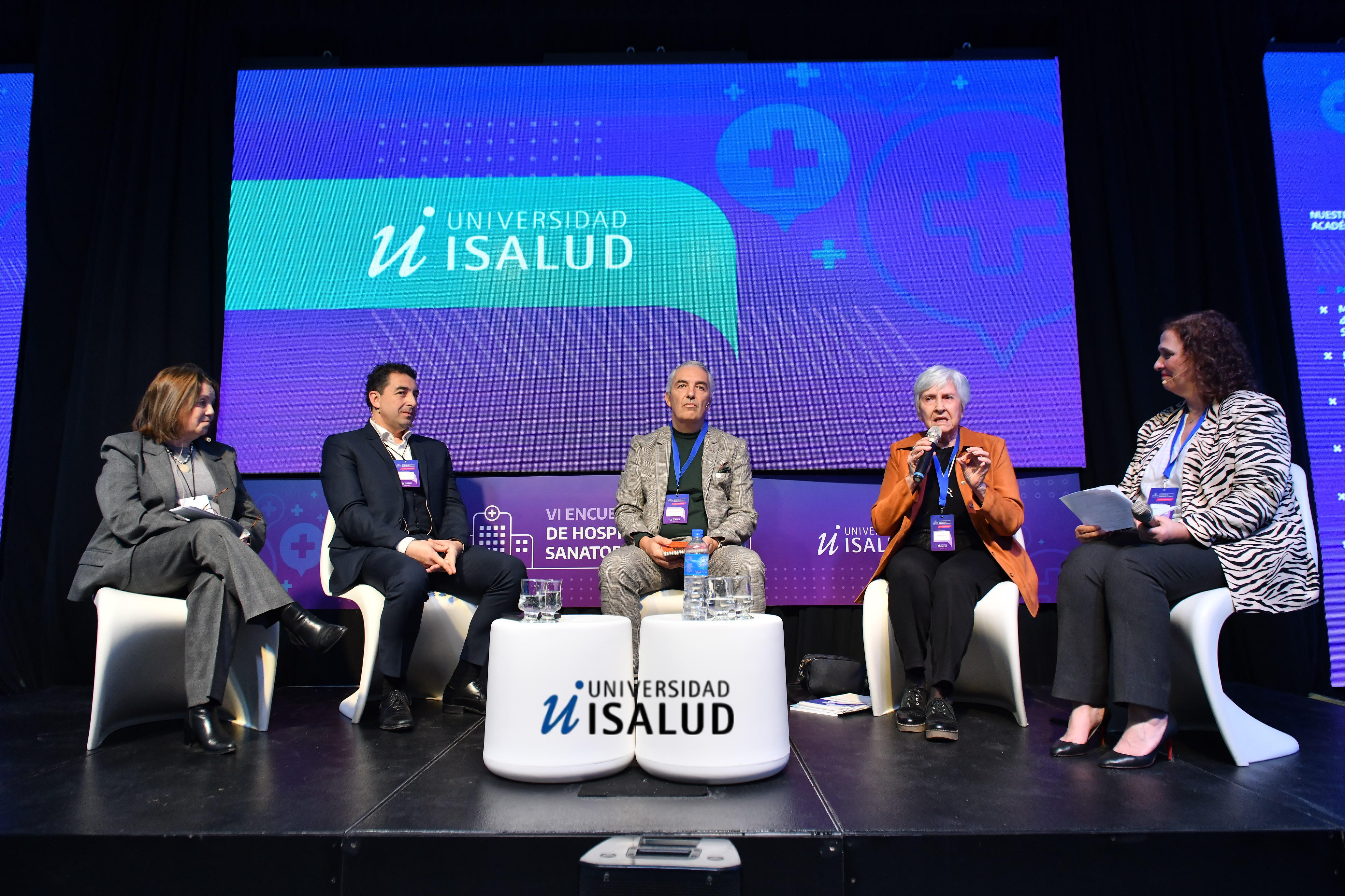 De izquierda a derecha: Gabriela Felippa (Universidad ISALUD); Rodrigo Verdugo Díaz (Colegio Argentino de Cardiología); Pedro Silberman (Universidad Nacional del Sur); Amanda Galli (Sociedad Argentina Investigación y Desarrollo Educación Médica) y Gabriela Lourtau (directora del Departamento de Ciencias de la Salud y Aplicadas de Universidad ISALUD), coordinadora del conversatorio sobre Formación como estrategia de distribución cuanti y cuali del conocimiento.