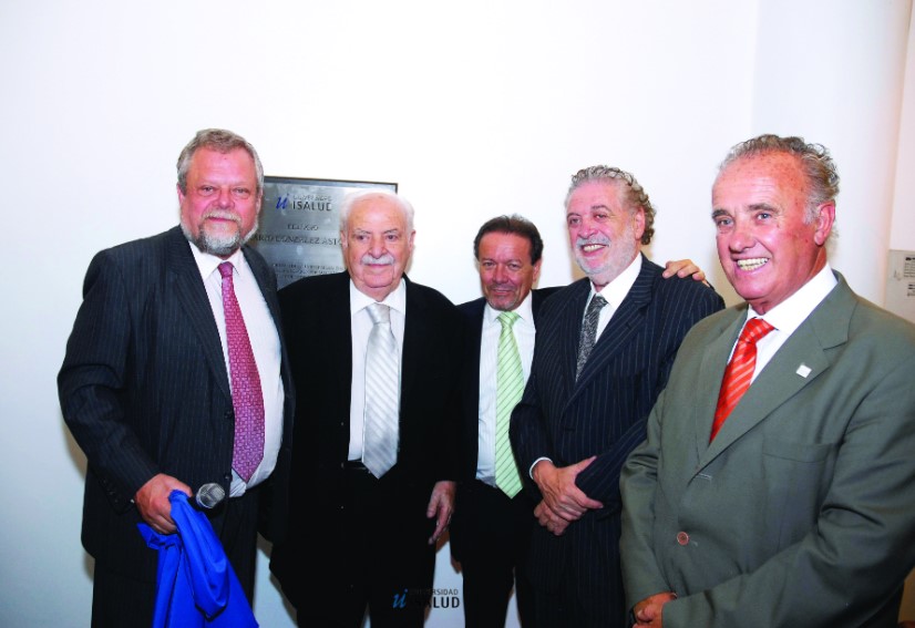 El rector de la Universidad ISALUD, Carlos Garavelli, junto al presidente de la Fundación, Mario González Astorquiza; el vicerrector de la Universidad, Eugenio Zanarini; el embajador argentino en Chile, Ginés González García; y el vicepresidente de la Fundación, Rubén Puppo presentes en la Entrega de Premios ISALUD 2009.