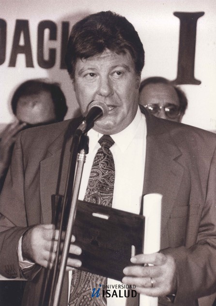 Momento en que el Dr. Hilario Ferrero recibe el Premio Isalud 1995 en la Categoría: Servicios de Salud (Individual)