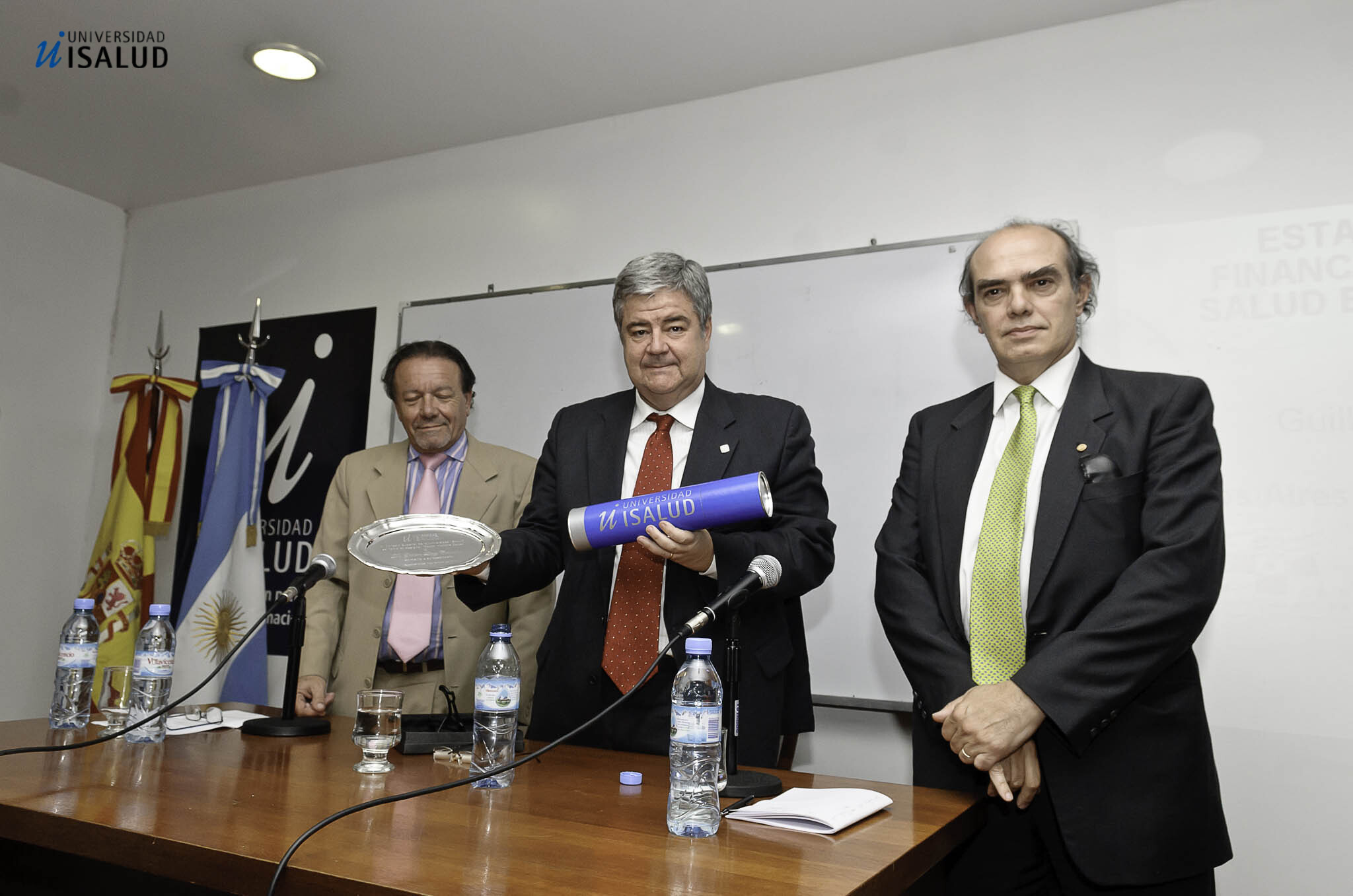 La Universidad ISALUD distinguió como Doctor Honoris Causa a Guillem López Casasnovas, destacado economista y jurista español que integró el Consejo de Gobierno del Banco de España. Reconocido por fundar el primer máster en Economía de la Salud en su país, Casasnovas ha mantenido un vínculo académico histórico con Argentina. El reconocimiento, entregado el 19 de noviembre de 2012, premia su liderazgo en la gestión de políticas públicas y su invaluable aporte técnico a la seguridad social y la dependencia. Recibe la distinción de manos de Eugenio Zanarini, Vicerector de Universidad y Arturo Schweiger, Director de la Maestria de Economía y Gestión de la Salud.