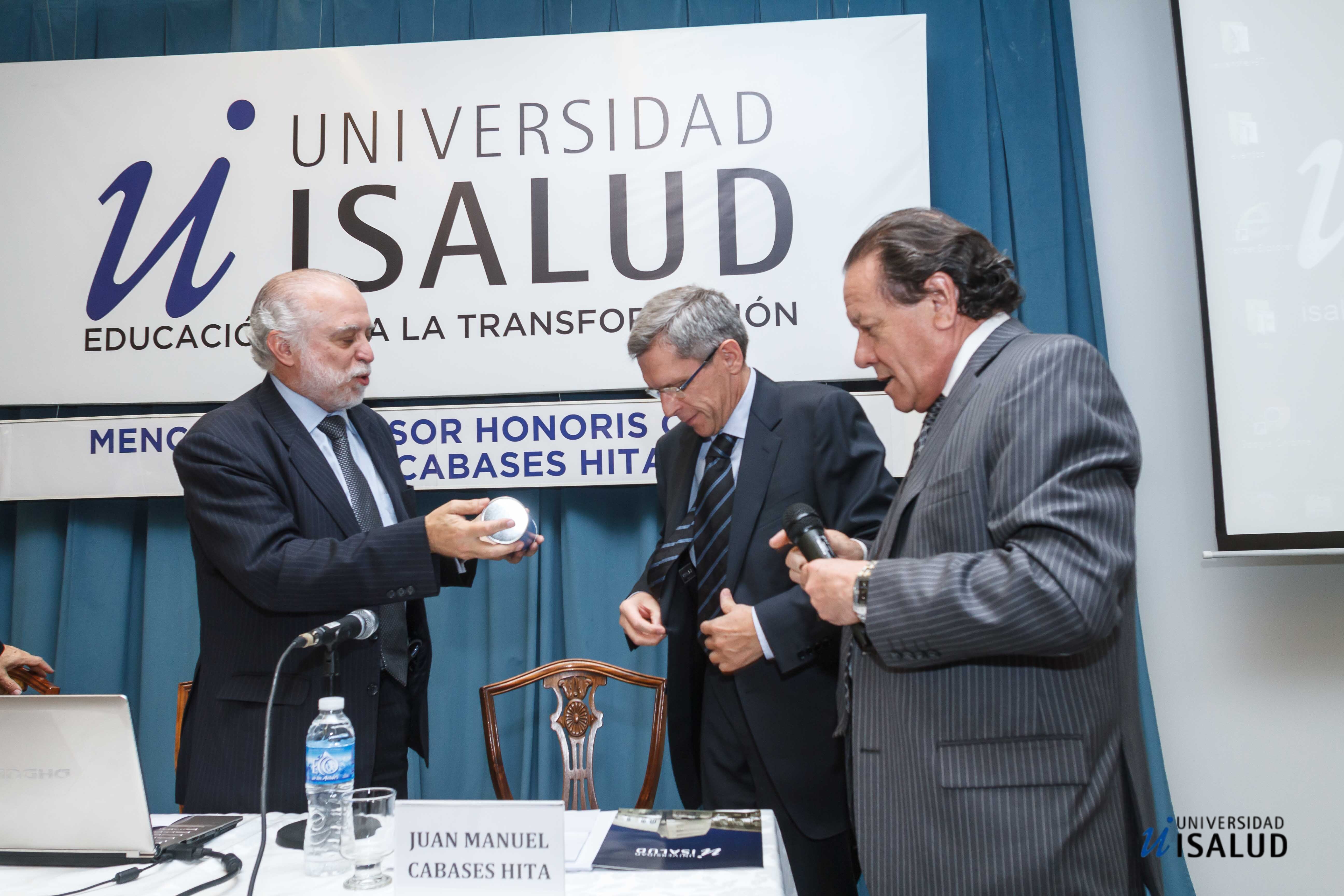 La Universidad ISALUD otorgó el Profesor Honoris Causa al Dr. Juan Cabases Hita el 21 de octubre de 2014, en reconocimiento a su destacada trayectoria académica y científica en el campo de la Economía de la Salud. La distinción fue entregada por el Rector, Dr. Rubén Torres, en un acto académico que contó con la participación de autoridades, docentes y estudiantes. Este reconocimiento valoró su aporte al desarrollo de políticas públicas sanitarias, su liderazgo internacional y su compromiso con la equidad en salud.